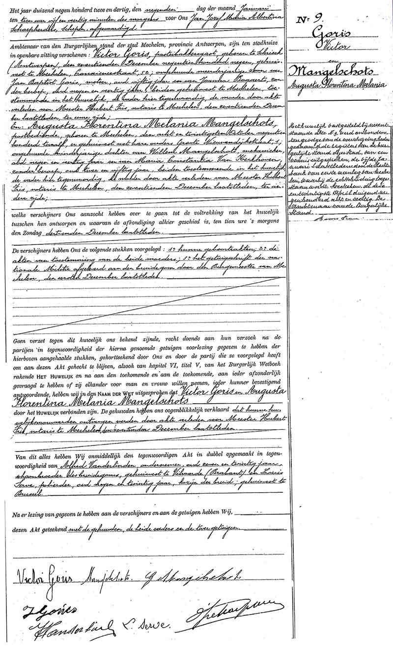 Gehuwd met Augusta Florentina Melania MANGELSCHOTS in Mechelen |